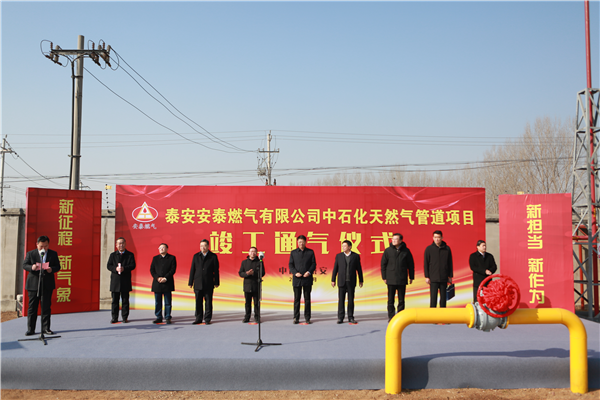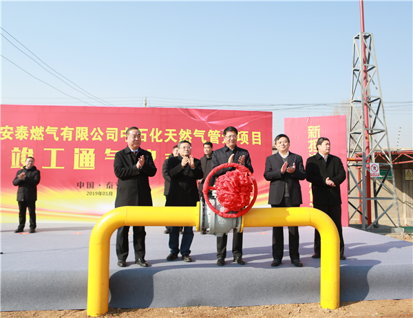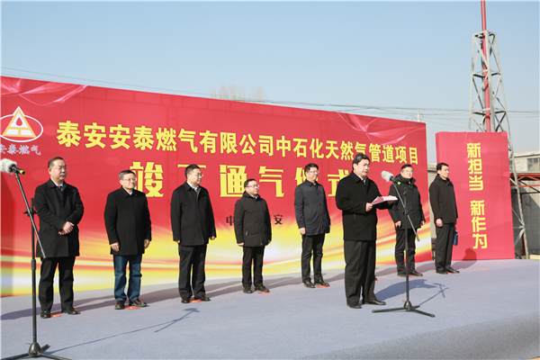 —泰安安泰燃?xì)庥邢薰九e行中石化管道項(xiàng)目竣工通氣儀式