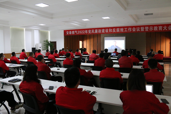 5月13日,安泰燃?xì)夤菊匍_2022年黨風(fēng)廉政建設(shè)和反腐敗工作會(huì)議暨警示教育大會(huì)。安泰燃?xì)夤绢I(lǐng)導(dǎo)班子成員、黨員干部、班組長(zhǎng)及重點(diǎn)崗位相關(guān)人員共同參加了會(huì)議。