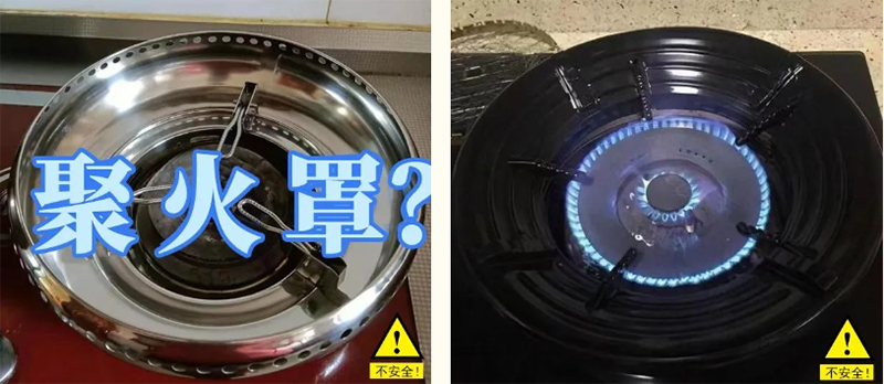 “防風(fēng)罩”又稱“聚火罩”“聚能盤”“節(jié)能環(huán)”,宣稱具有防風(fēng)、節(jié)能、減少熱損失、提高熱效率的功能。但是一旦使用了這種“防風(fēng)罩“,看似把火焰圍起來(lái),讓燃?xì)饧袦p少浪費(fèi)。實(shí)際上是減少了進(jìn)氣空間,阻礙了空氣流通,讓燃燒需要的氧氣供給不足,導(dǎo)致不完全燃燒,不僅降低了熱效率,還產(chǎn)生一氧化碳等有害氣體,形成安全隱患。