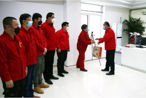 因為大部分的醫(yī)護家屬們都在抗“疫”一線或隔離狀態(tài),慰問活動只能在公司會議室與公司職工面對面進行。在會議室,公司領(lǐng)導(dǎo)班子成員對職工們的生活情況進行了仔細詢問,并著重了解他們生活中的實際困難。同時,公司為他們送上了生活必需品,把關(guān)愛員工,尤其是家屬奮戰(zhàn)在防疫一線的職工落到實處。
