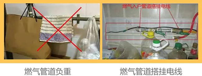 燃氣管道搭掛或負重,將要求現(xiàn)場整改