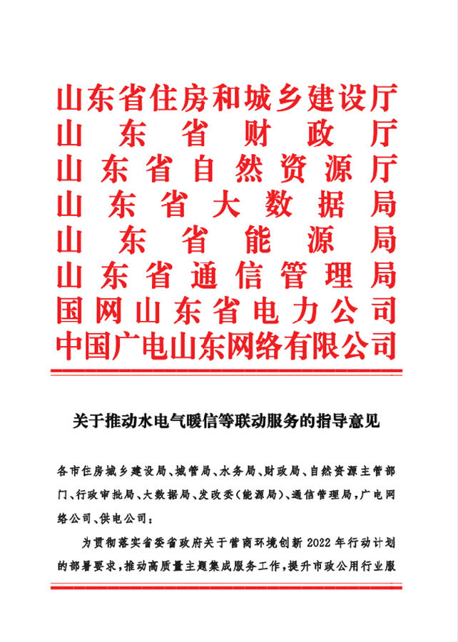 關(guān)于推動水電氣暖信等聯(lián)動服務(wù)的指導(dǎo)意見