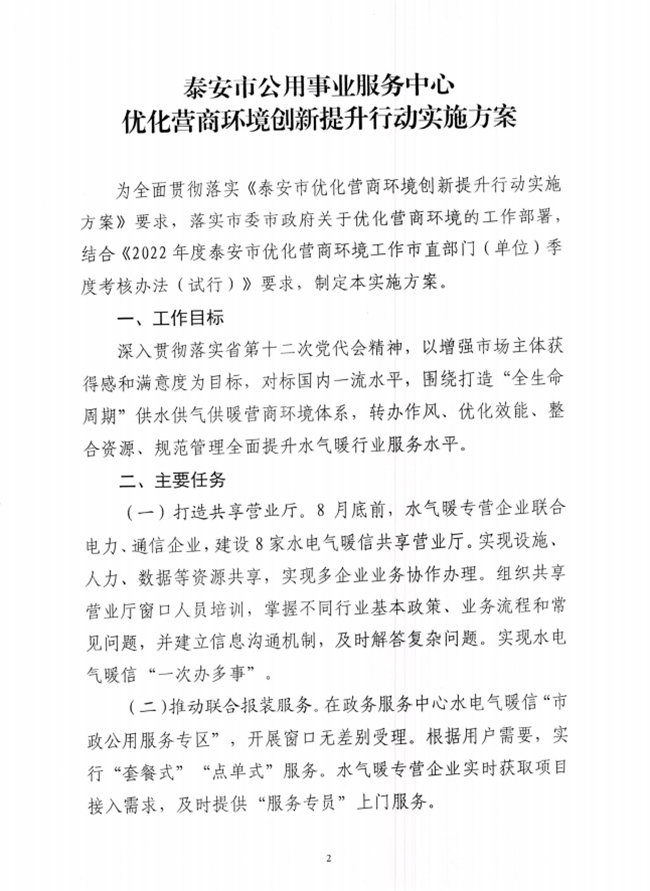 關(guān)于印發(fā)《泰安市公用事業(yè)服務(wù)中心優(yōu)化營(yíng)商環(huán)境創(chuàng)新提升行動(dòng)實(shí)施方案》的通知
